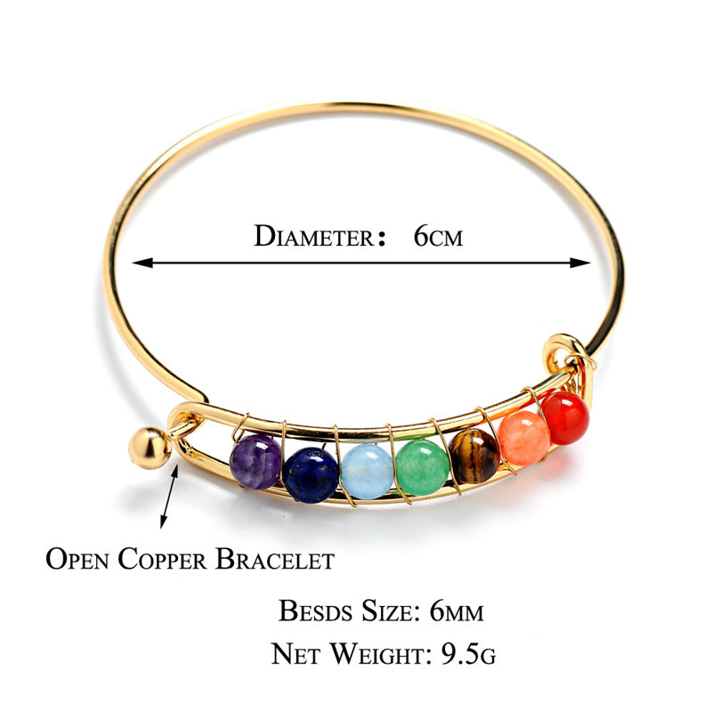 Silver or gold charming natural and energy stone beads in 7 chakra cuff bracelet made from high-quality copper and natural stone material with an easy hook clasp. Can be customized and all compatible to wear any casual dress.