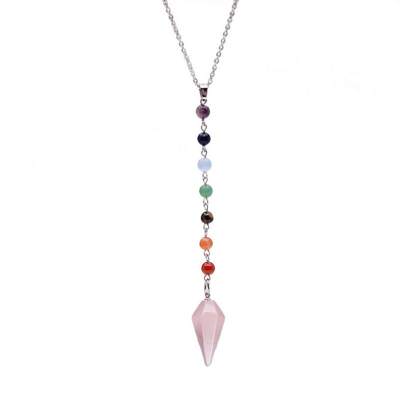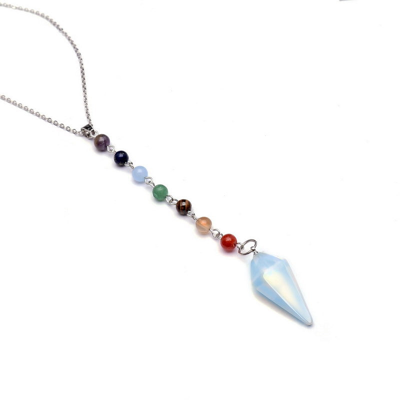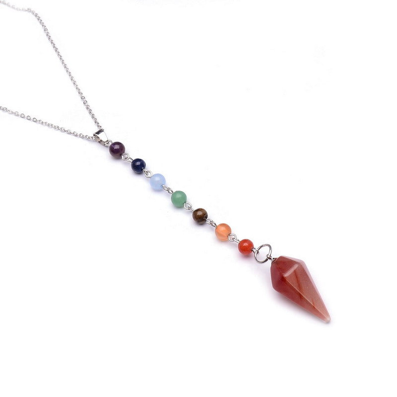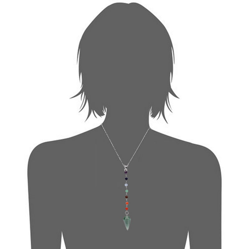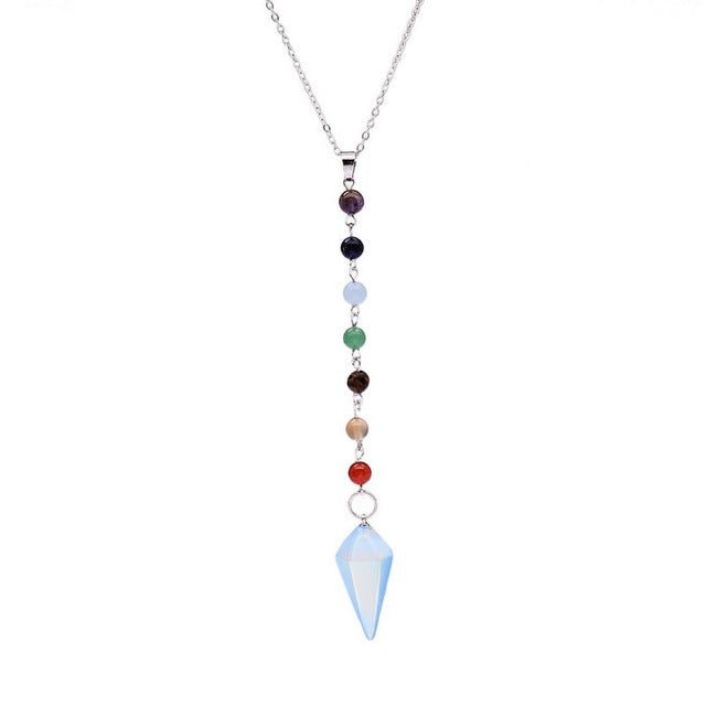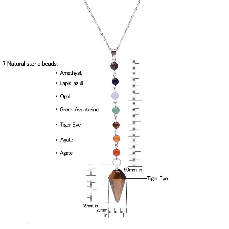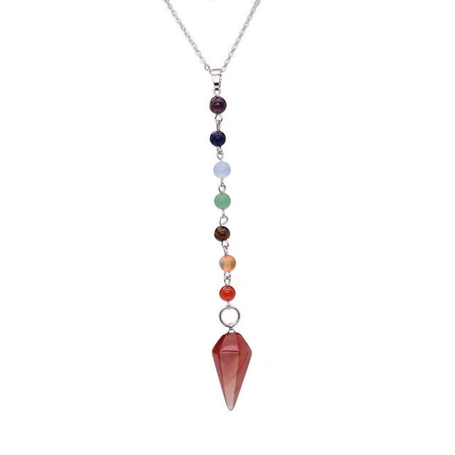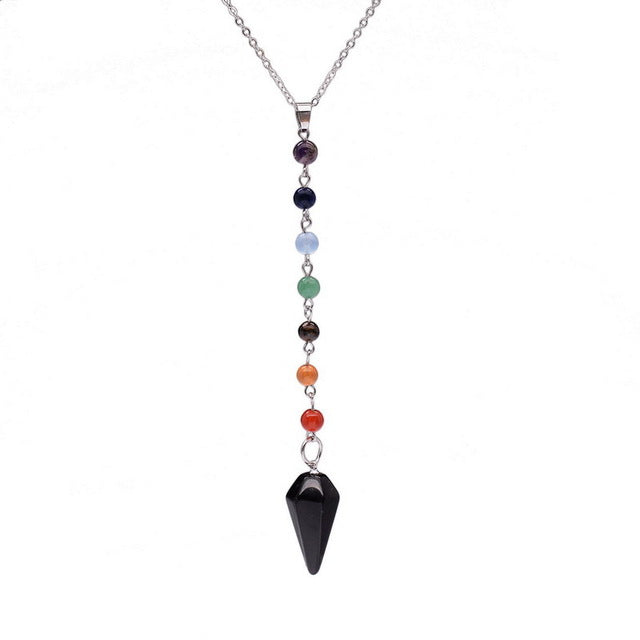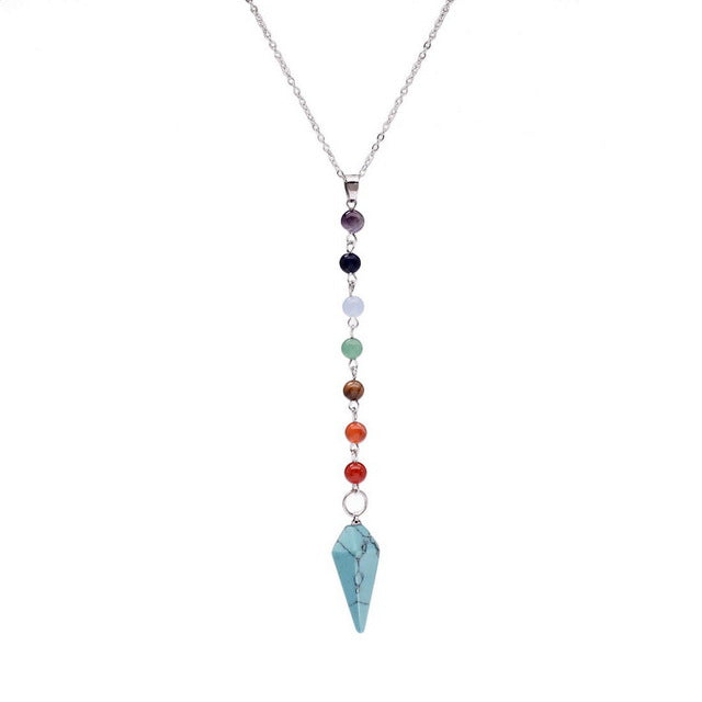 Natural round 7 chakra gem stone beads in a sword pendulum pendants silver necklace. A fashionable semi-precious stone material of necklaces can be a gift for your loved ones or to women who love fashion and trendy jewelry collection.