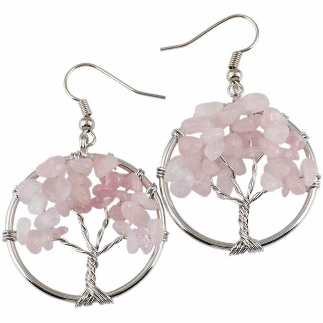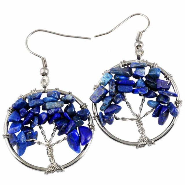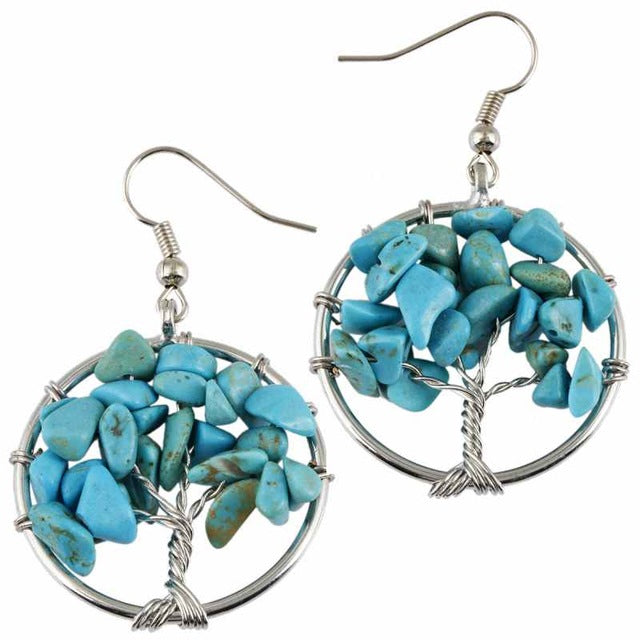 Tree Of Life Wrapped Tumbled Stone Earrings